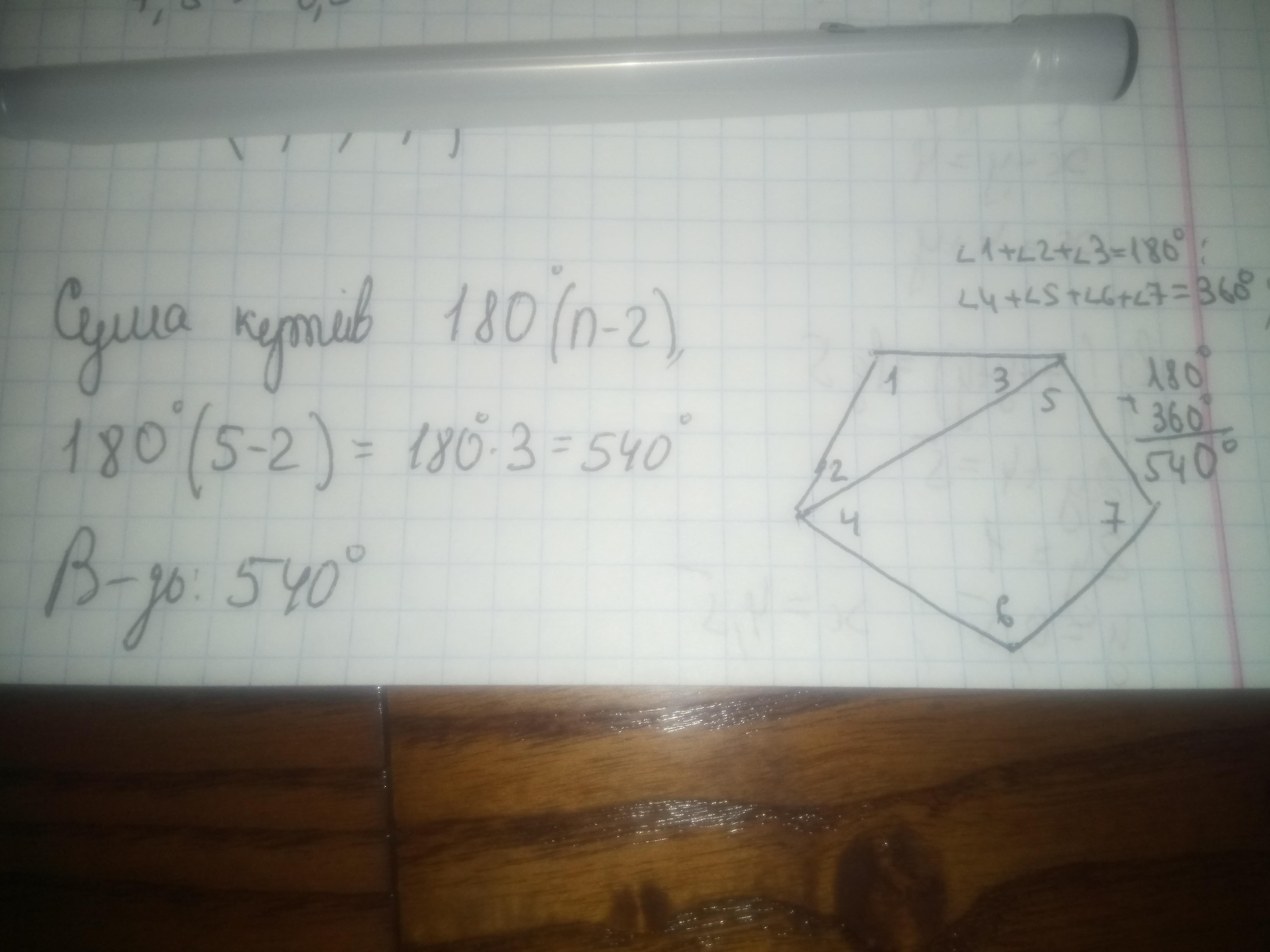 В пятиугольнике сумма внутренних углов равна 180°•(5 - 2) = 180° • 3 = 540°.