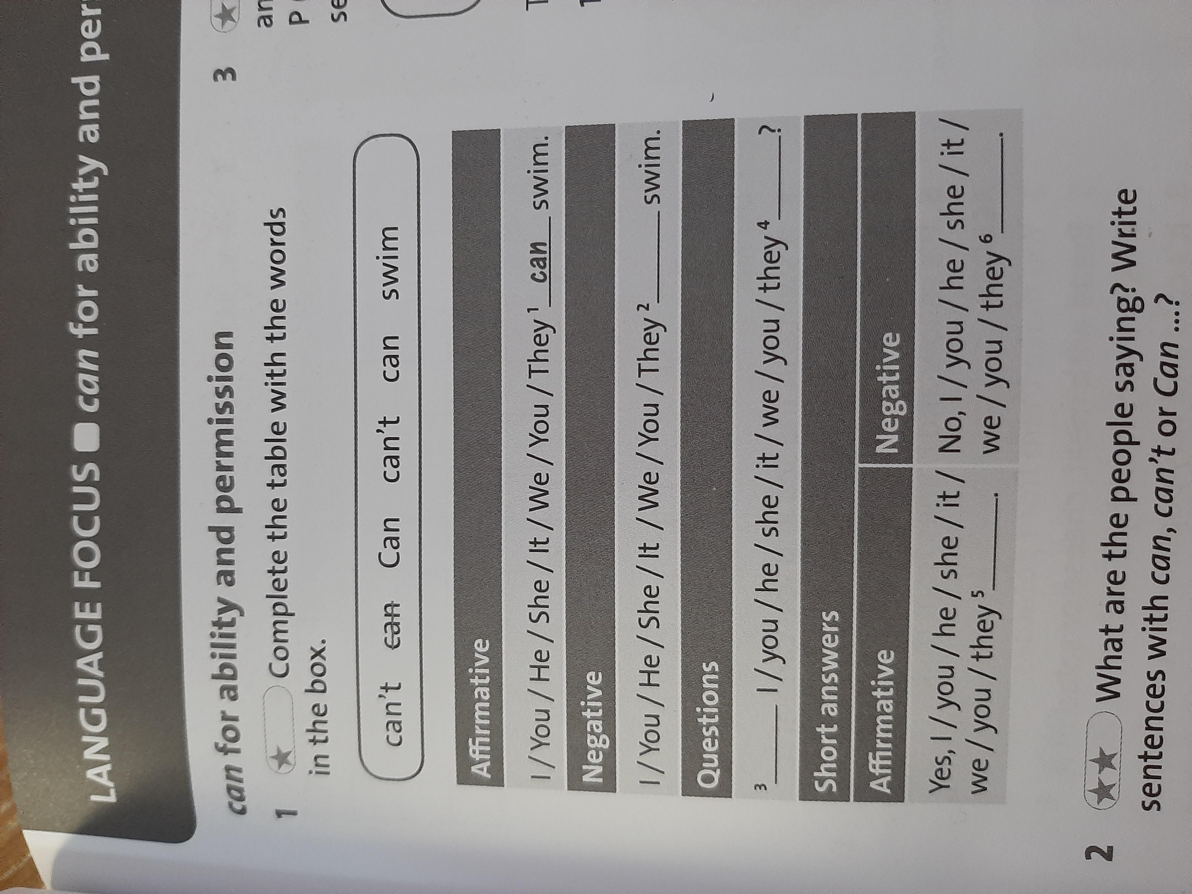2)can 3)Cant 4)swim 5) can 6) cant