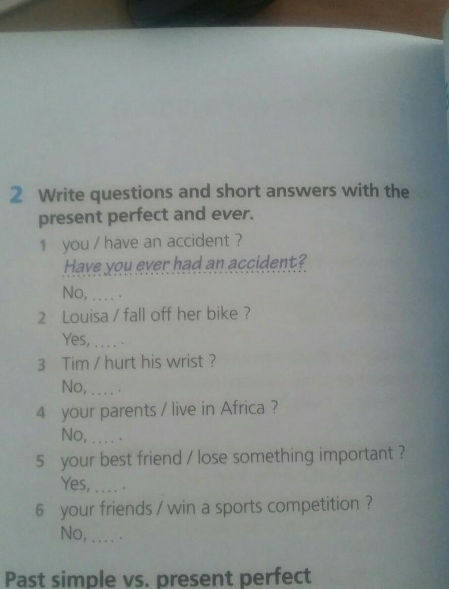 Write questions and shirt answers with the present perfect and ever.