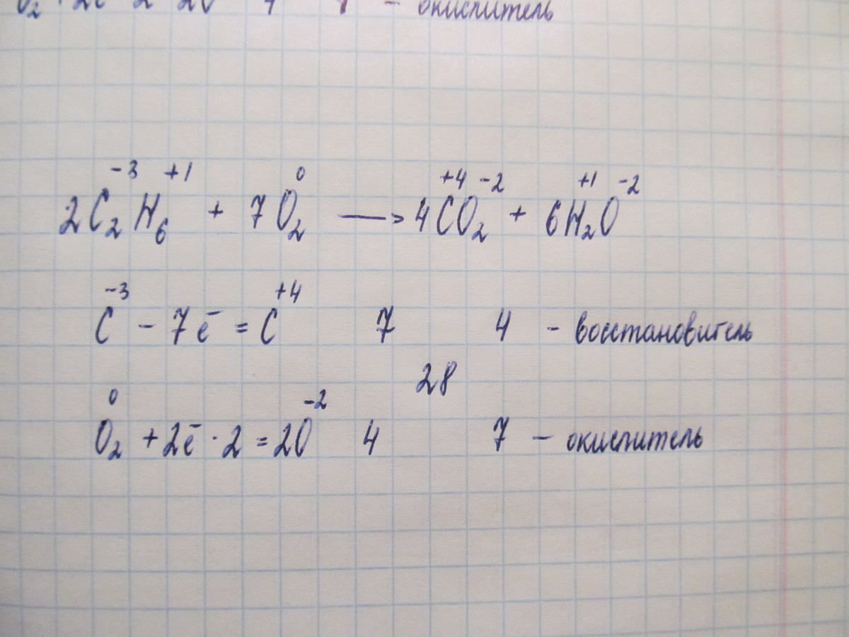 уравнять методом електронного баланса С2H6 + O2 -----> CO2+ H2O,указать окислитель-восстановитель