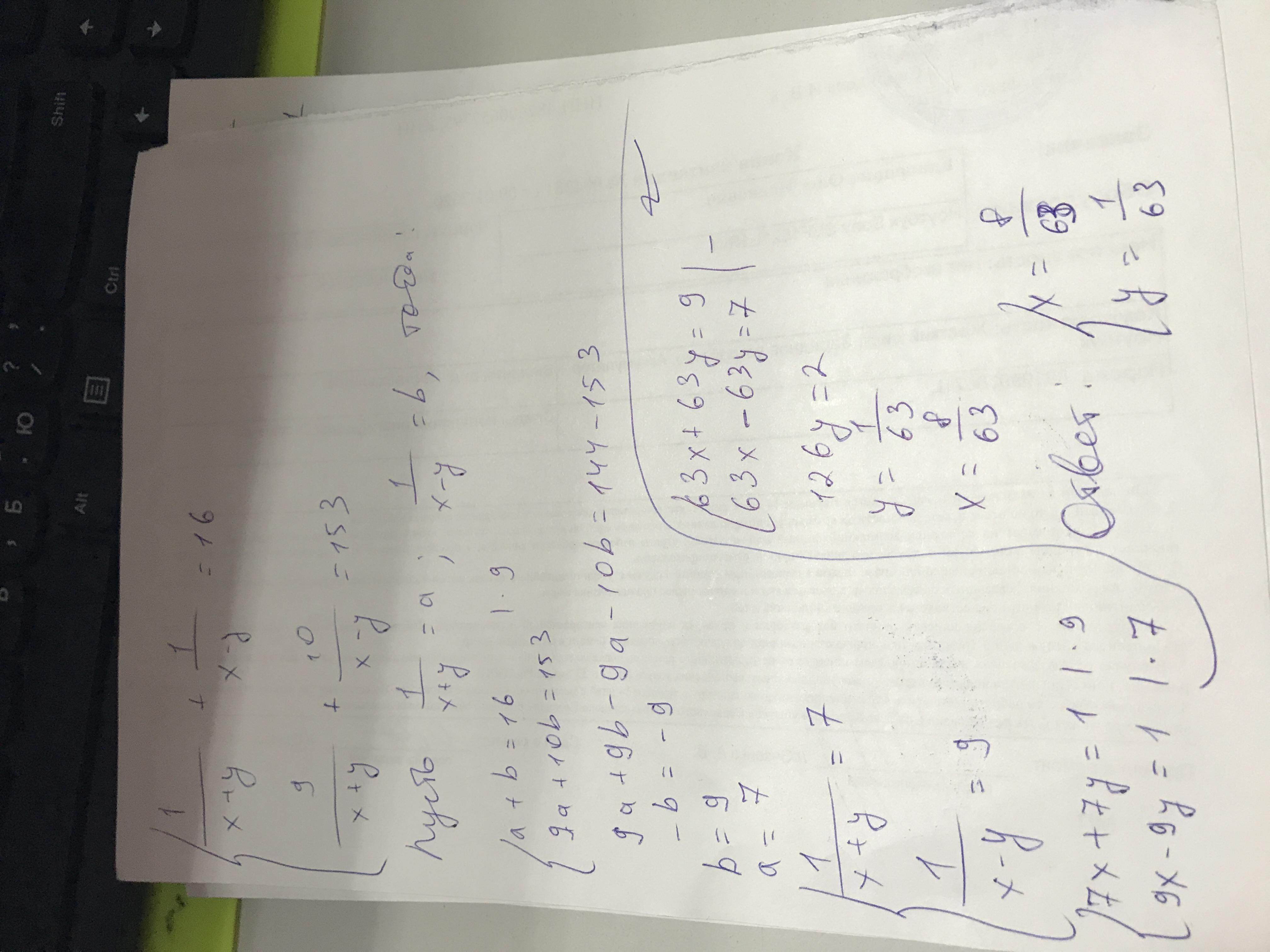 ⎧(1)/(x+y)+(1)/(x−y)=16