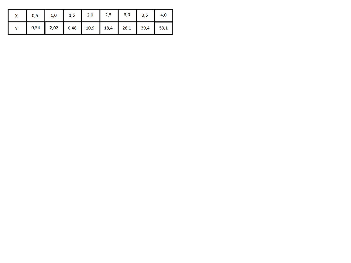 1)Подобрать формулу эмпирической зависимости между x и y. Для начало по точкам не плохо было бы построить , если построить график то будет что то половины параболы , то есть ее правый кусок симметрично расположенный по оси ОУ .(см график)