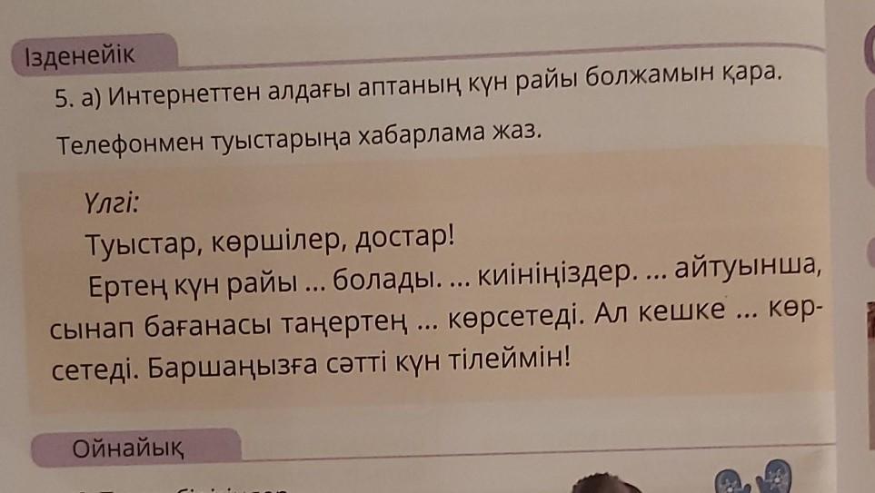 Ертен күн суық болады.Сондыктан бәріңіз жылы киініп жүрініздер.Деп адамдар солай болжам айтуда
