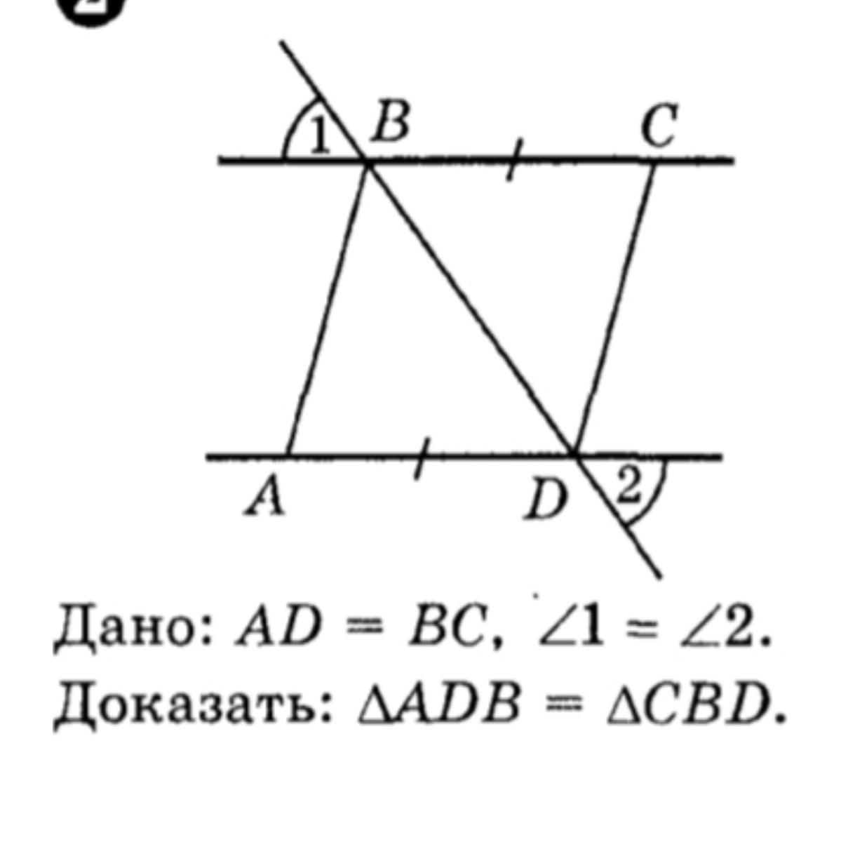 Угол СВД=углу АДВ (т.к. угол 1 вертикален углу СВД, а угол 2 вертикален с углом АДВ)