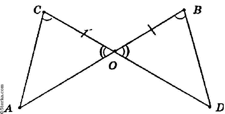 Дано: отр.CD и AB пересекающиеся в т. О, АО=ВО , ∠АОС=∠BDO.
