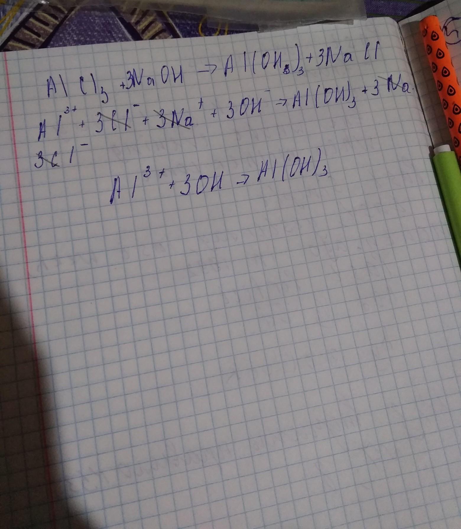 Полное ионное: Al(+3)+3Cl(-1)+3Na(+)+3OH(-1) = 3Na(+1)+3Cl(-1)+Al(OH)3