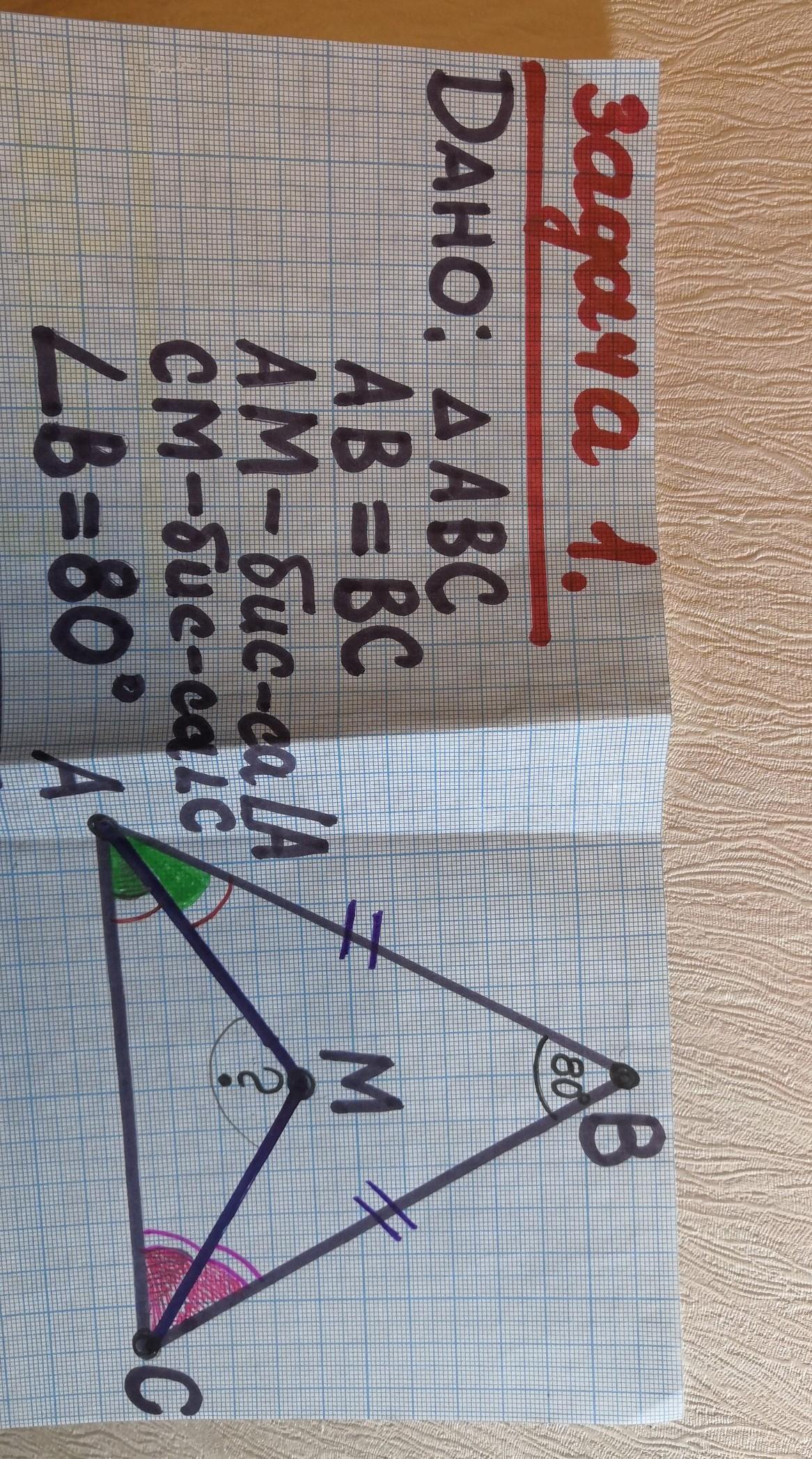 Бисектриса А делает А на попалам и получается 25° и второй триугольник который в центре