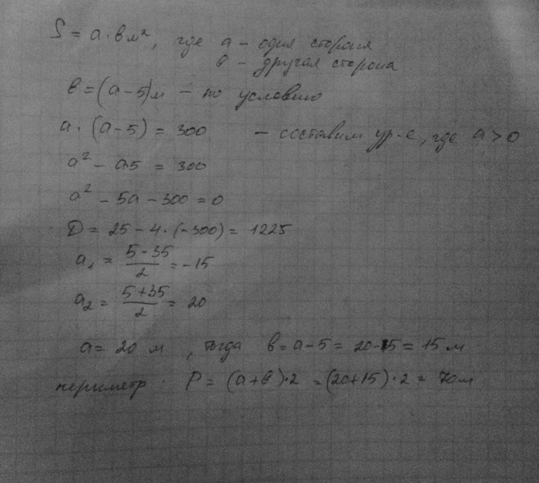 Хватит ли 80 м сетки, чтобы огородить в зоопарке прямоугольный вольер для животных , одна сторона которого на 5 м меньше другой, если его площадь равна 300 м ²