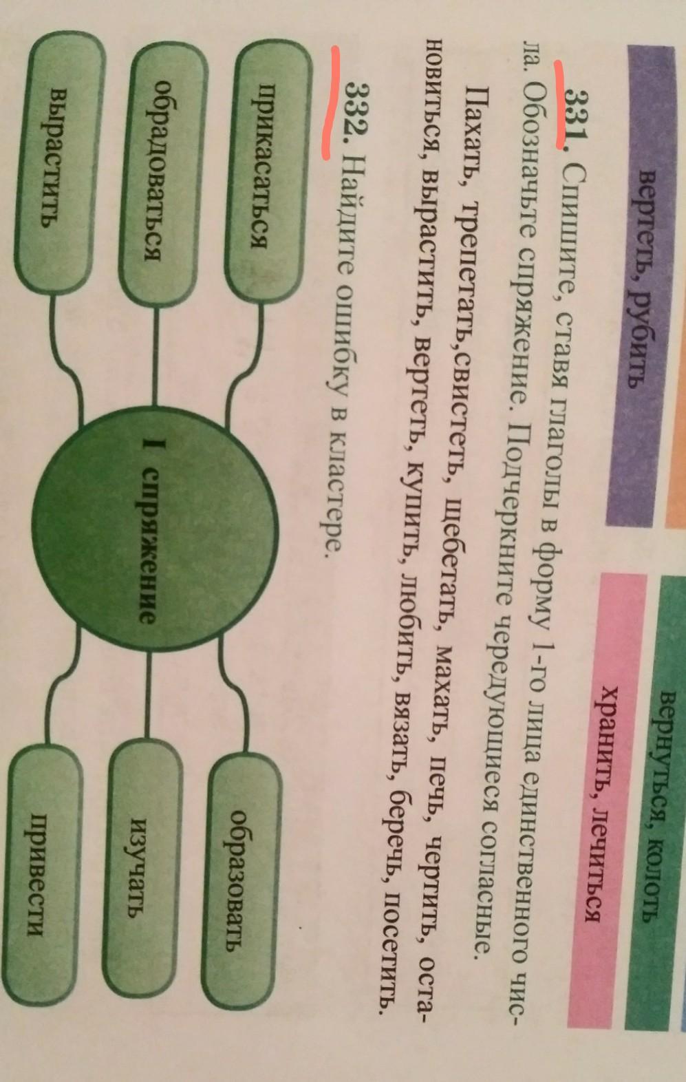 332. В этой схеме надо найти ошибку. По моему, тут ошибка-слово принести и вырасти(т.к. это 2 спряжение).