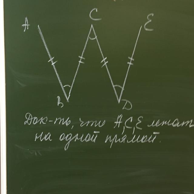 5) Поскольку две параллельные прямые АС и СЕ имеют общую точку С, то следовательно они принадлежат одно прямой АЕ.