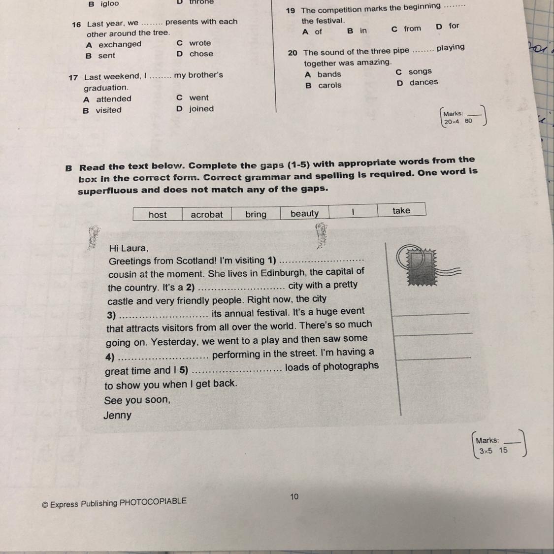 1.my 2.beautiful 3.? 4.acrobats 5.'ll take