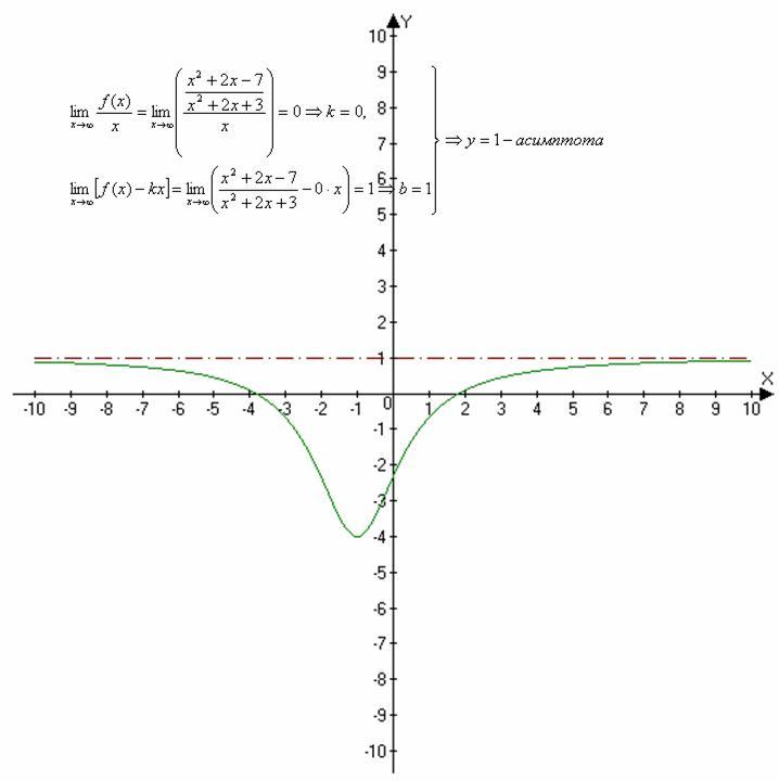 вот для этой функции все же будет по-другому? просто я только что поняла,что не тот знак поставила у=у=(x^2+2x-7)/(x^2+2x-3) в знаменателе -
