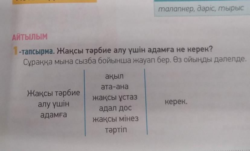 - Жаксы мінез(Сенің мінезынең сеның тәрбиен байланысты,өз-өзінді ұстай білсен тәрбиенде жақсы болады)