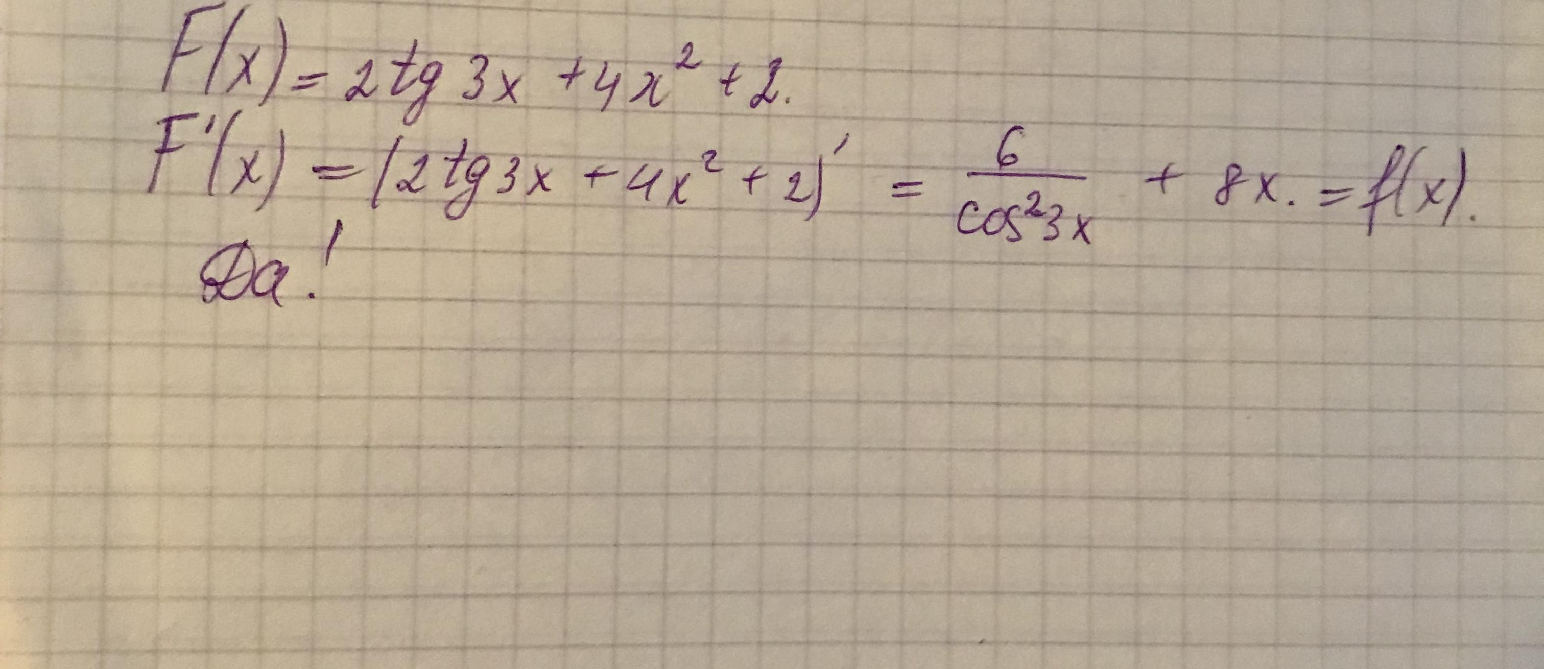 Помогите пожалуйста решить!!!СРОЧНО! Проверьте, является ли функция F(x) первообразной для функции f(x)