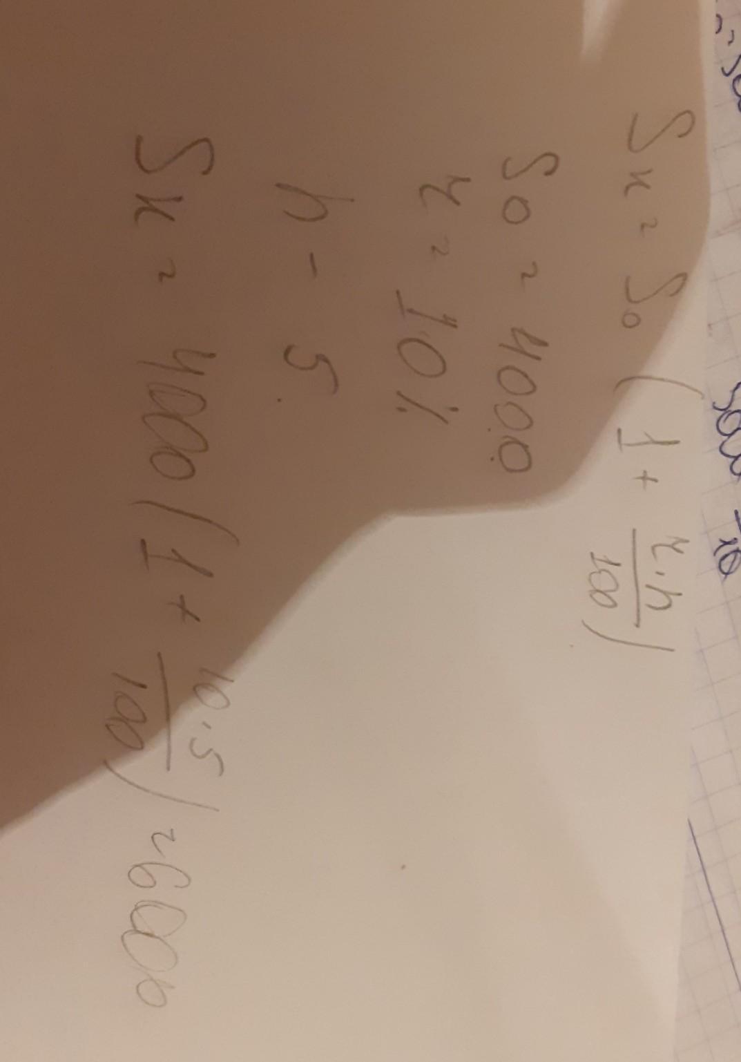 Сергей положил в банк сумму, равную 4 000 рублей, банк даёт 10% годовых, срок хранения вклада – 5 лет. Посчитайте, какую сумму получит Сергей, если начисление процентов будет происходить по стратегии простого начисления процентов.