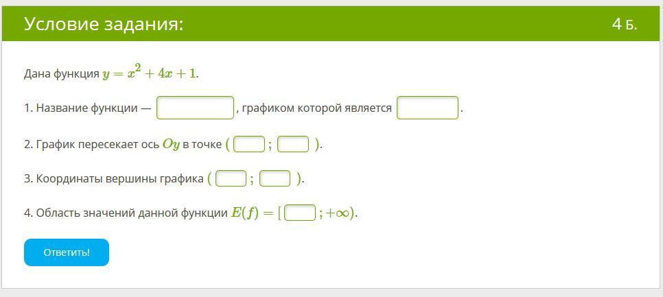 4. Область значений данной функции Е(f)=[-3;+∞)