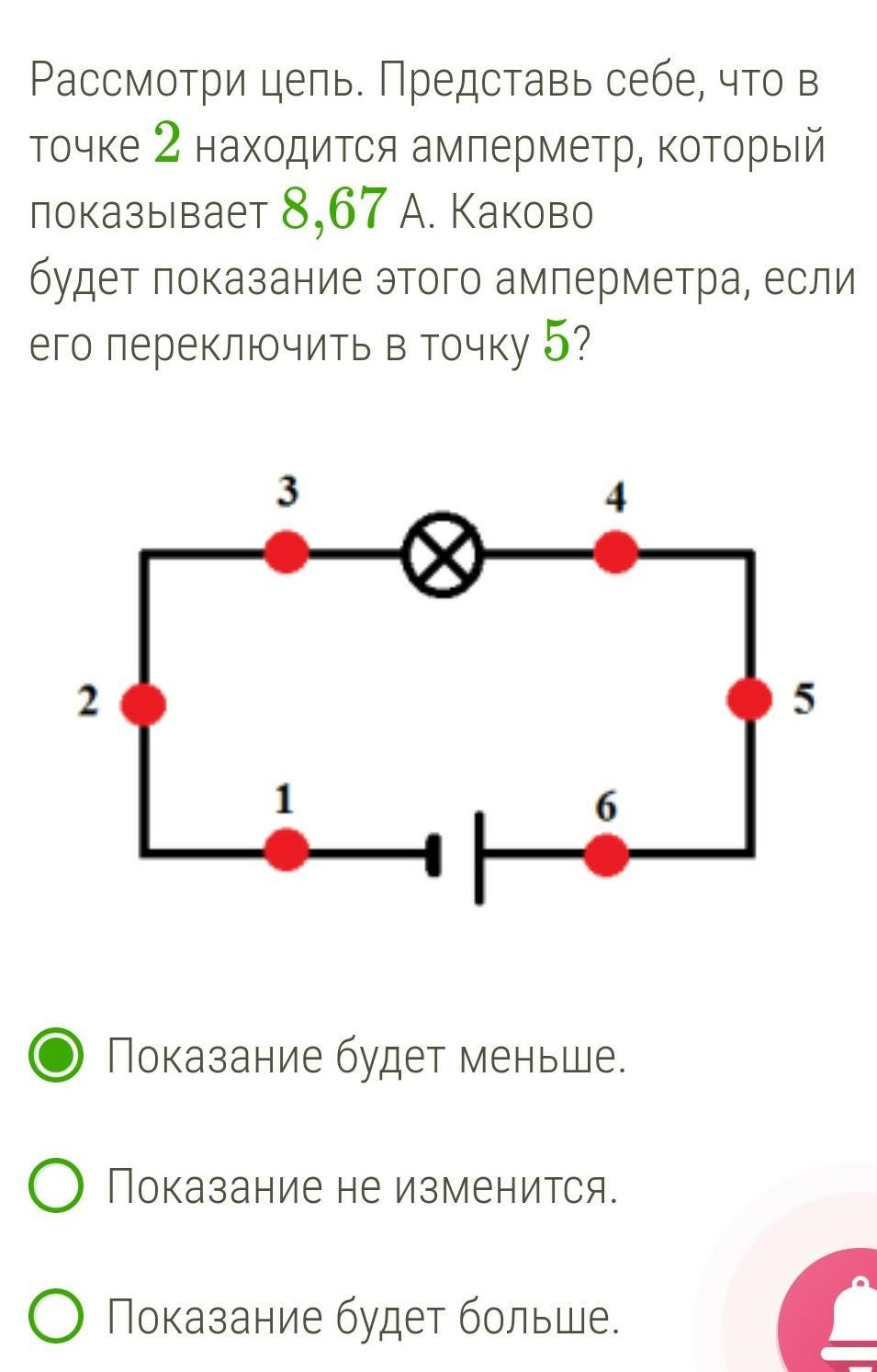 При включении амперметра в любую точку этой цепи его показания не изменяются.