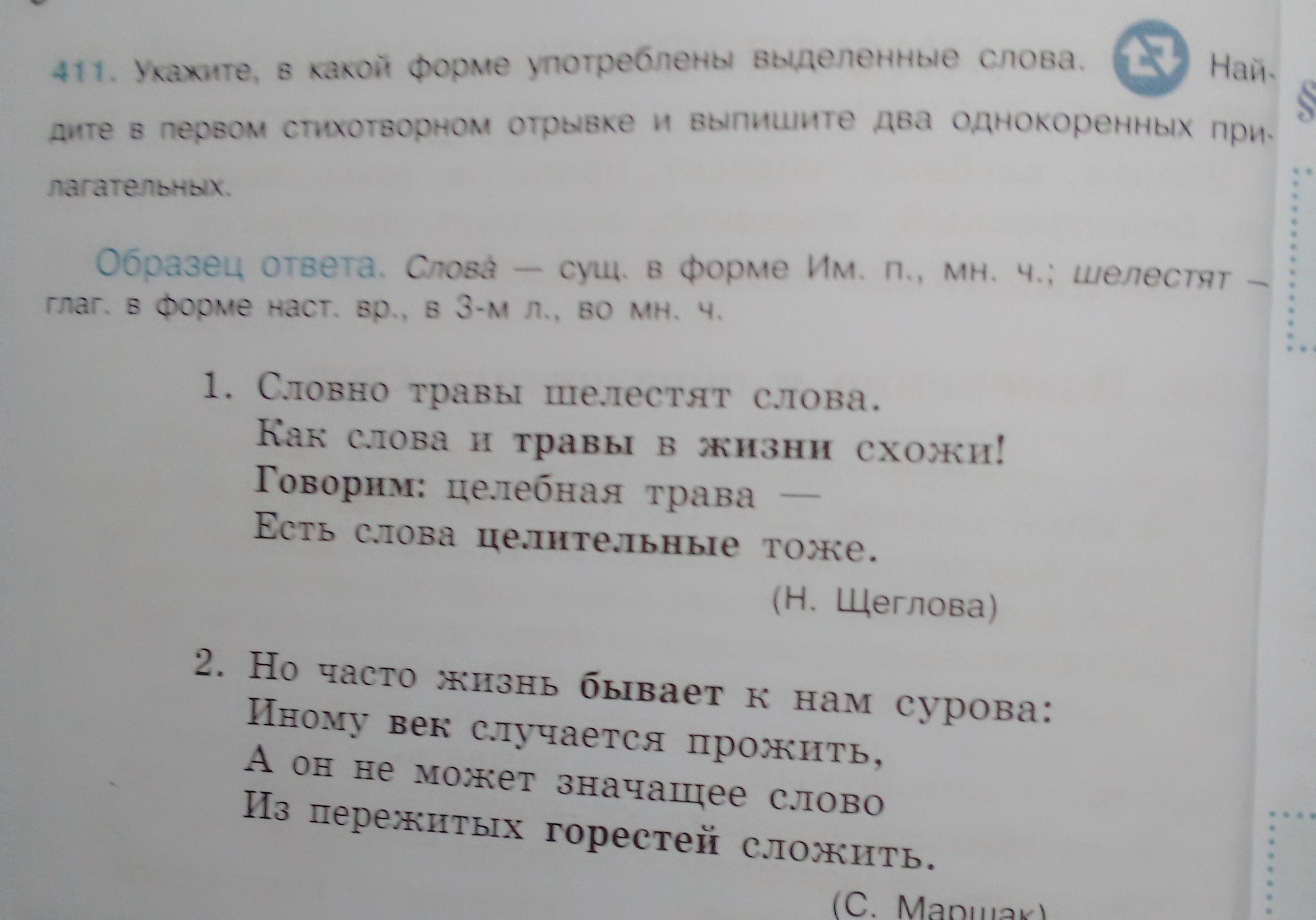 укажите в какой форме употреблены выделенные слова найдите в первом стихотворном отрывке и выпишите два однокоренных прилагательных.