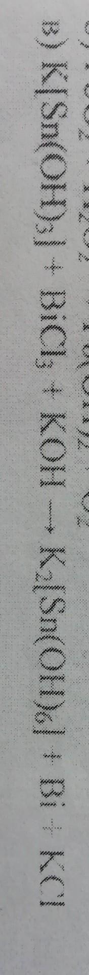 3K(SN(OH)3) + 2BiCl3 + 9HKO → 3K2(SN(OH)6) + 2Bi + 6KCl