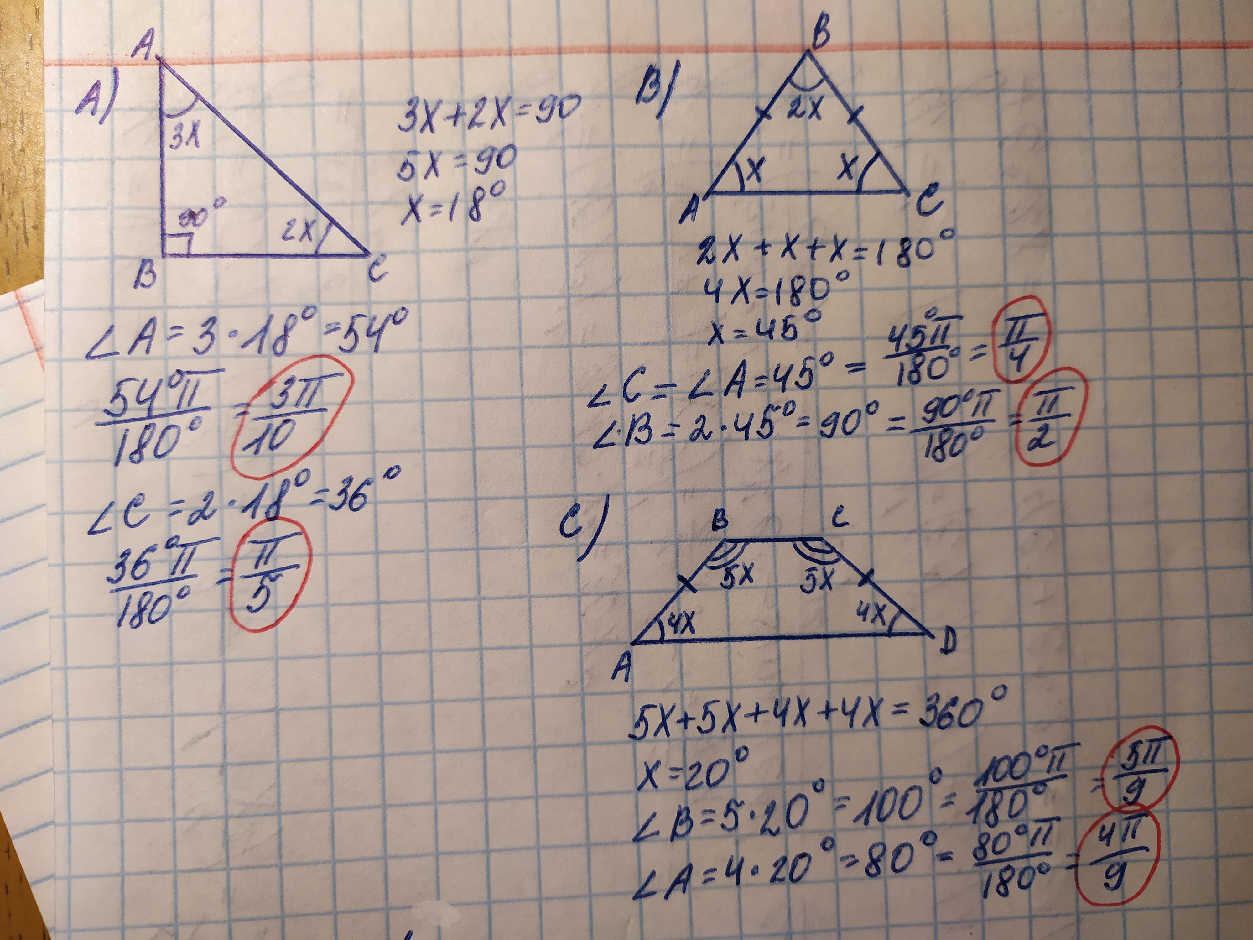a) прямоугольного треугольника острые углы которого относятся как 3 :2;