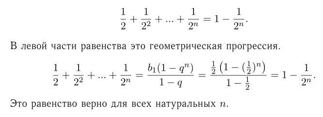 1/2 + 1/2² + 1/2³ + ... + 1/2^k = 1 - 1/2^k