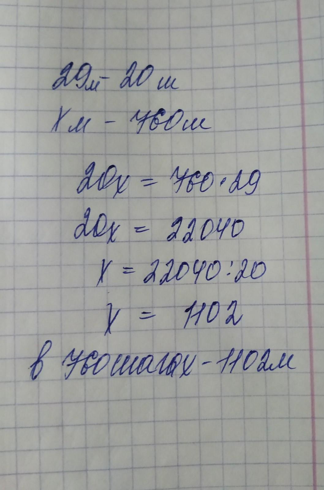 2) 38 * 29 = 1102 (м) - в 760 шагах
