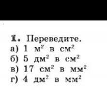 а) 1м2=100м2 б) 5дм2=100см2 в) 17см2=170000мм2г)4дм2=40000мм2