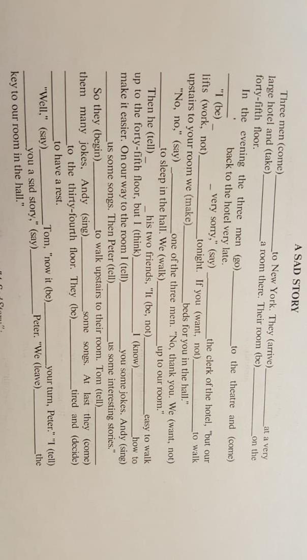 So they began to walk upstairs to their room. Tom told them many jokes, Andy sang some songs. At last they came to the thirty-fourth floor. They were tired and decided to have a rest.