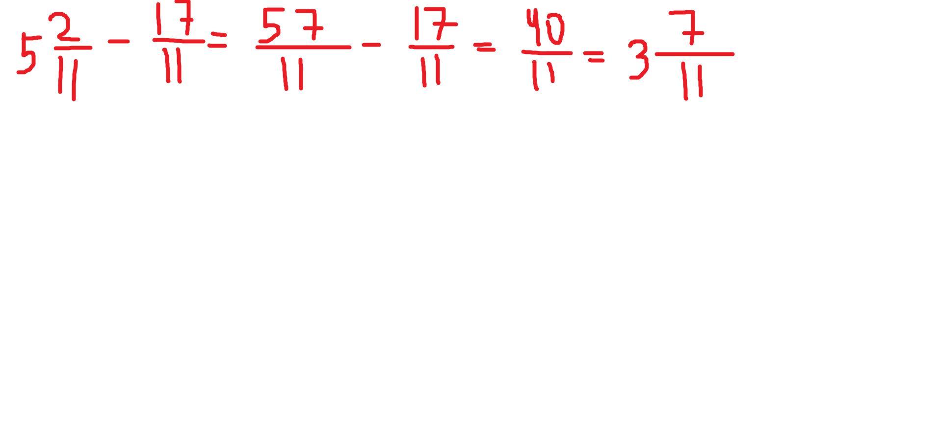 5 2/11-17/11=57/11- 17/11=40/11= 3 7/11