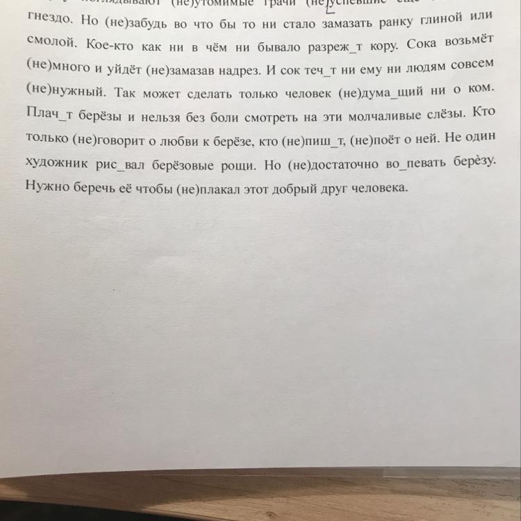Но не забудь во что бы то ни стало замазать ранку глиной или смолой. Кое-кто как ни в чём ни бывало разрежут кору. Сока возьмет немного и уйдет не замазав надрез. И сок течёт ни ему ни людям совсем ненужный. Так может сделать только человек не думающий ни о ком. Плачут берёзы и нельзя без боли смотреть на эти молчаливые слезы. Кто только не говорит о любви к берёзе, кто не пишет,не поёт о ней. Не один художник рисовал берёзовые рощи. Но недостаточно воспевать берёзу. Нужно беречь ее чтобы не плакал этот добрый друг человека.