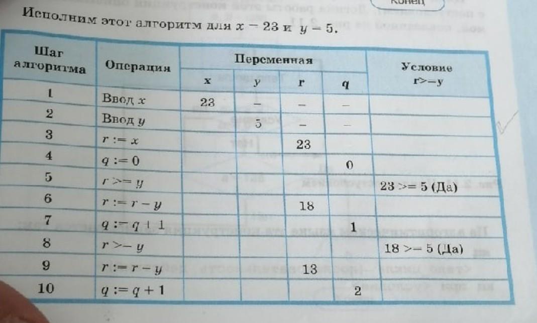 В каждом шаге нужно записать какое значение имеет переменная, которая в процессе может измениться.