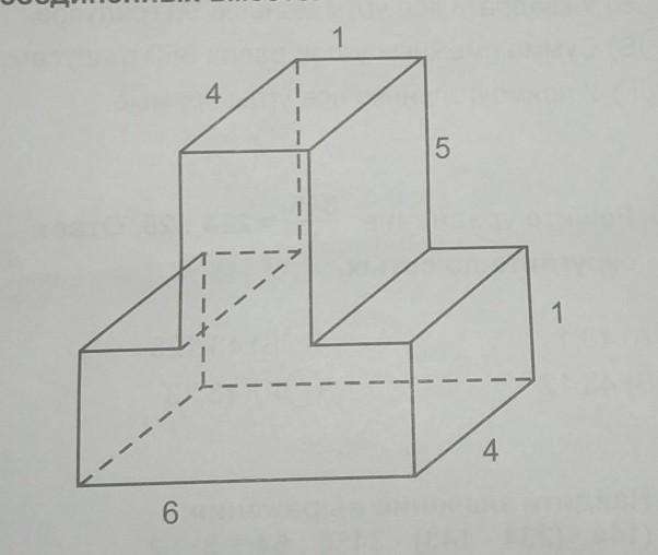 Найдите объем фигуры, изображённой на рисунке, если известно, что фигура состоит из двух прямоугольных параллелипедов, соединённых вместе.