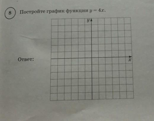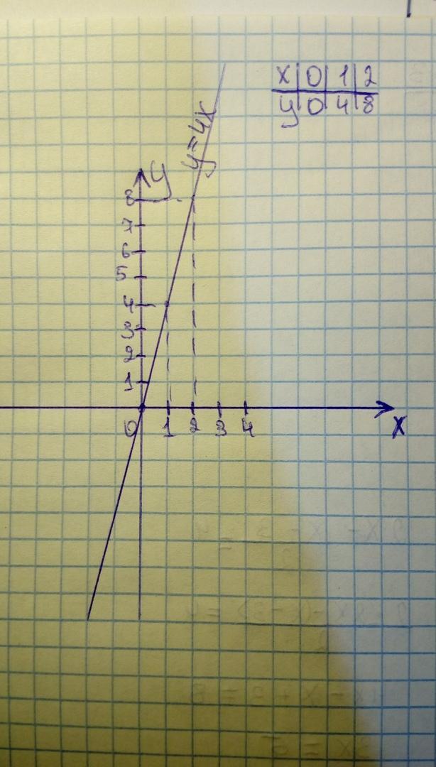 Это обычное уравнение прямой, которое можно построить по двум точкам. Я для наглядности взял 3. Для этого нужно просто подставлять любые значения х. Например, берем на оси х точку 0, то получим,что у=4*0=0. Берем точку на оси х берем точку 1,то получим у=4*1=4. Проводим прямую через эти точки.Готово.