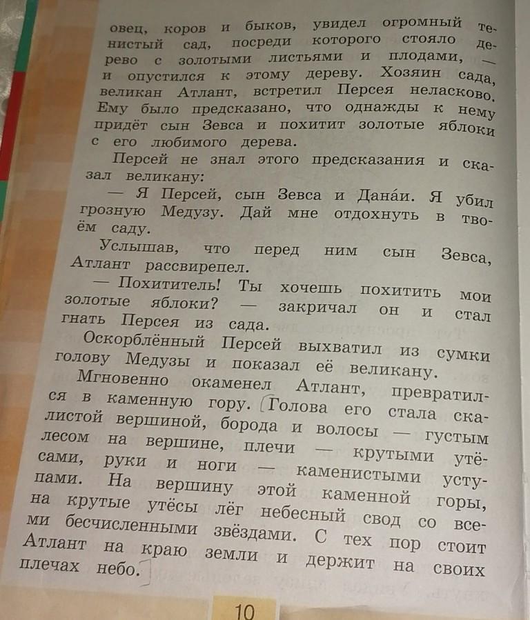 Найди описание встречи Персея с Атлантом. Выдели то, что помогает понять представления древних греков об устройстве мироздания.