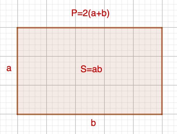 - Периметр прямоугольника равен удвоенной сумме длины и ширины.