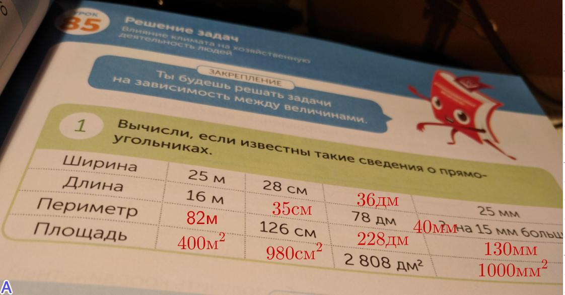 4. Здесь надо найти периметр и площадь. Нам известна ширина а = 25 мм, а длина на 15 мм больше: