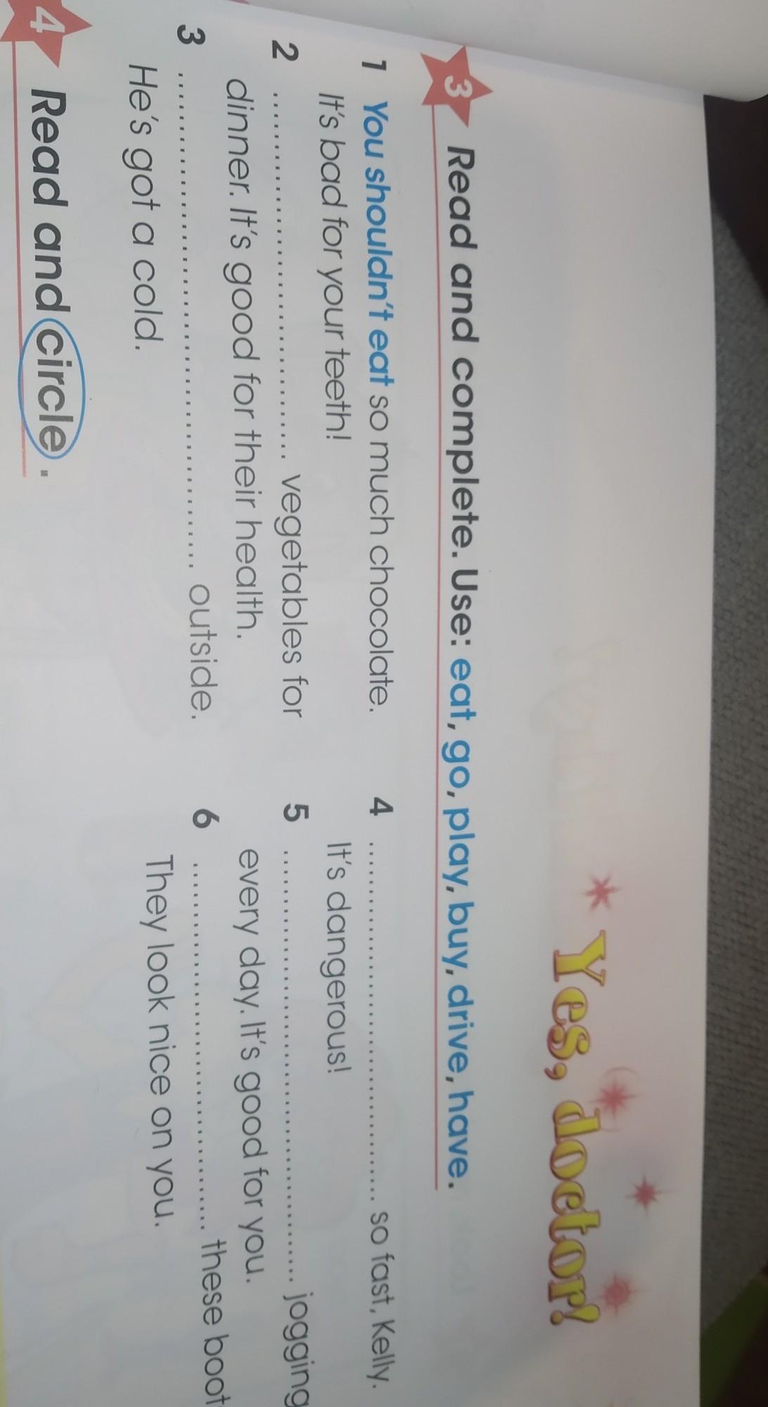 2- you should eat , 3- you shouldn't go outside , 4 you shouldn't drive so fast , 5- you should have , 6- you should buy