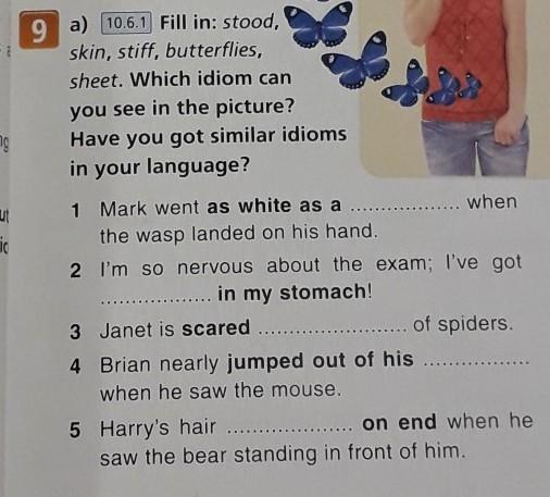 1. sheet; 2. butterflies; 3. stiff; 4. skin; 5. stood