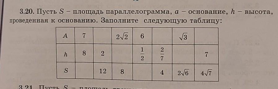 S= ah , т.е S=7*8=54, s= 6*1/2= 3