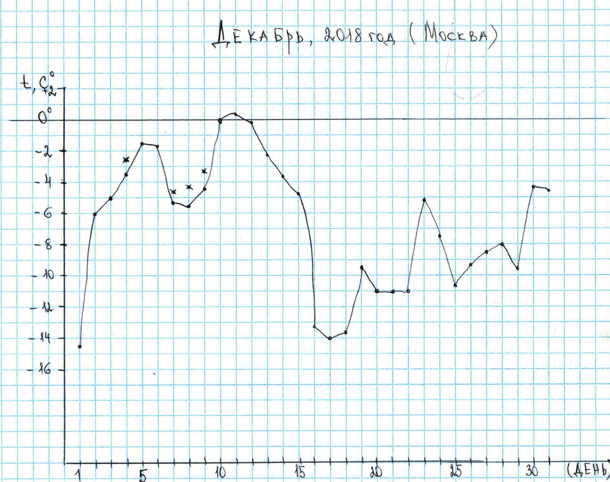 В Москве рассчитать среднюю t и амплитуду колебания t за декабрь месяц.Построить график.