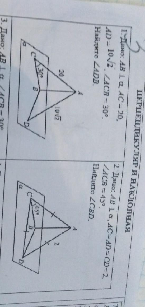 AB перпендикулярно плоскости альфа, AC=20,AD=10 корней из 2,угол ACB=30°