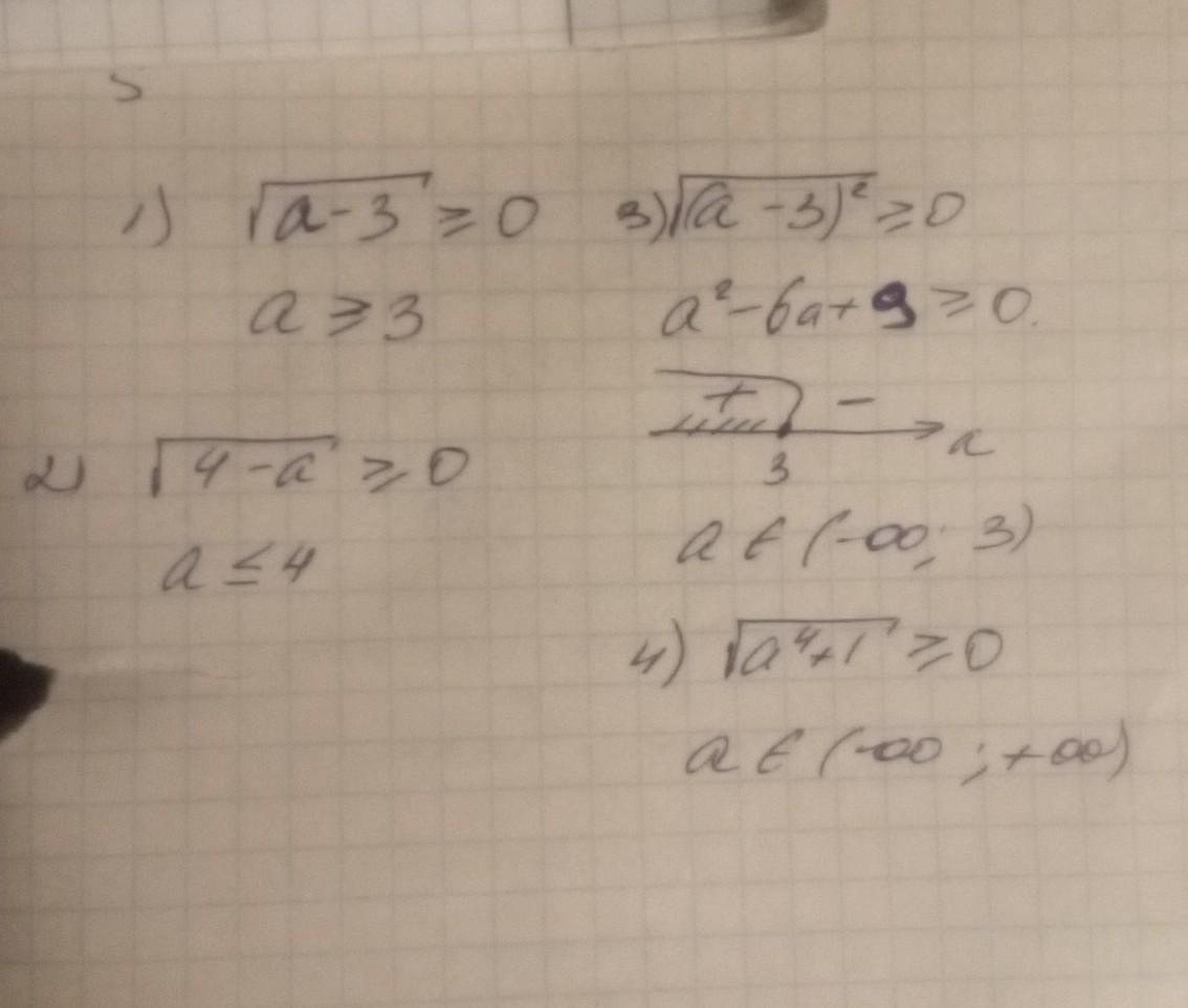 корень может быть всегда больше или равен нулю,а в последнем ТК а в четной степени,то всегда будет положителен,при сумме +1 >0