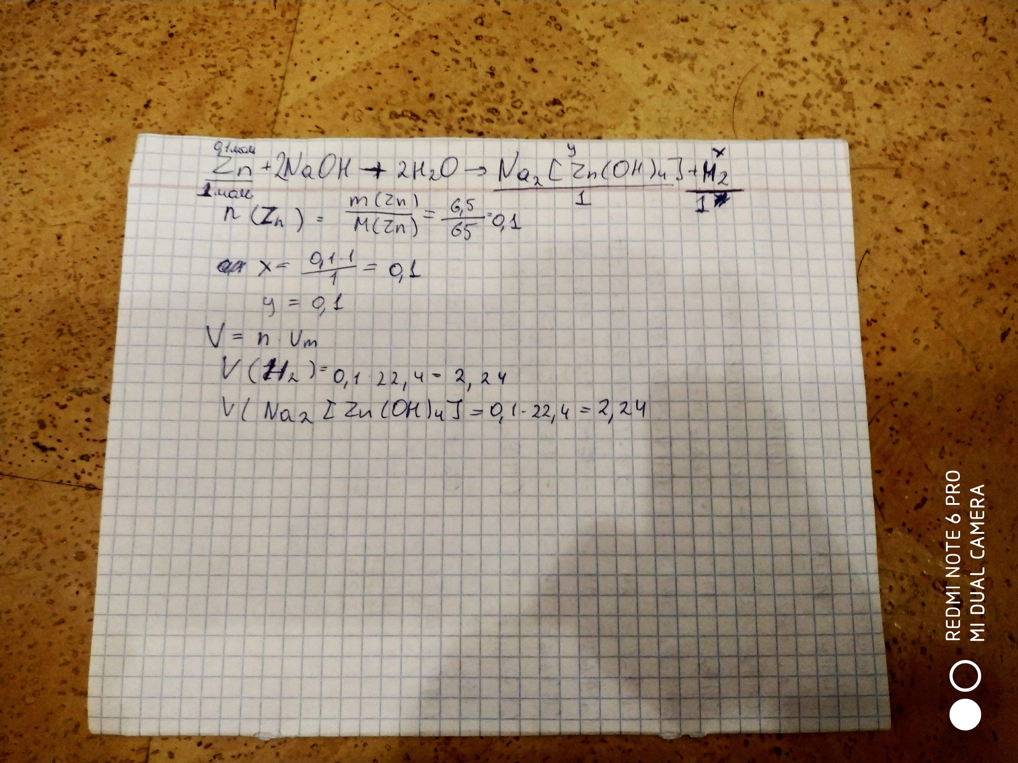 Вычислите объем водорода при н.у и массу тетрагидроцинката натрия которые образуются при взаимодействии 6,5 г. цинка с раствором гидроксида натрия