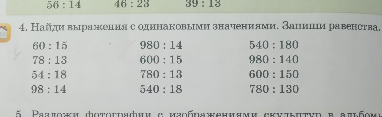 4) 98:14=7. 8) 540:18=30. 12) 780:130=6