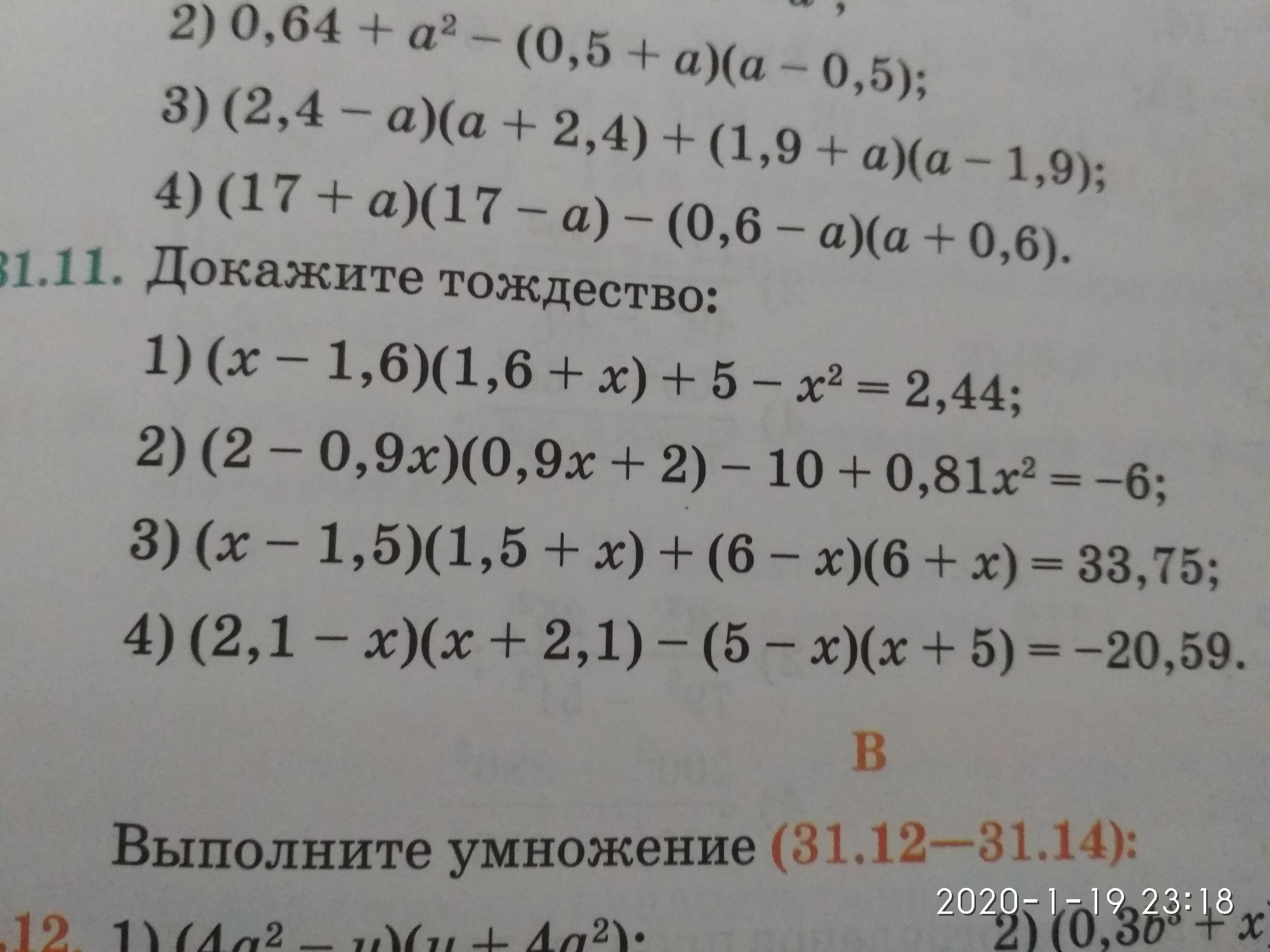 1) х^2-1.6^2+5-х^2=2.44