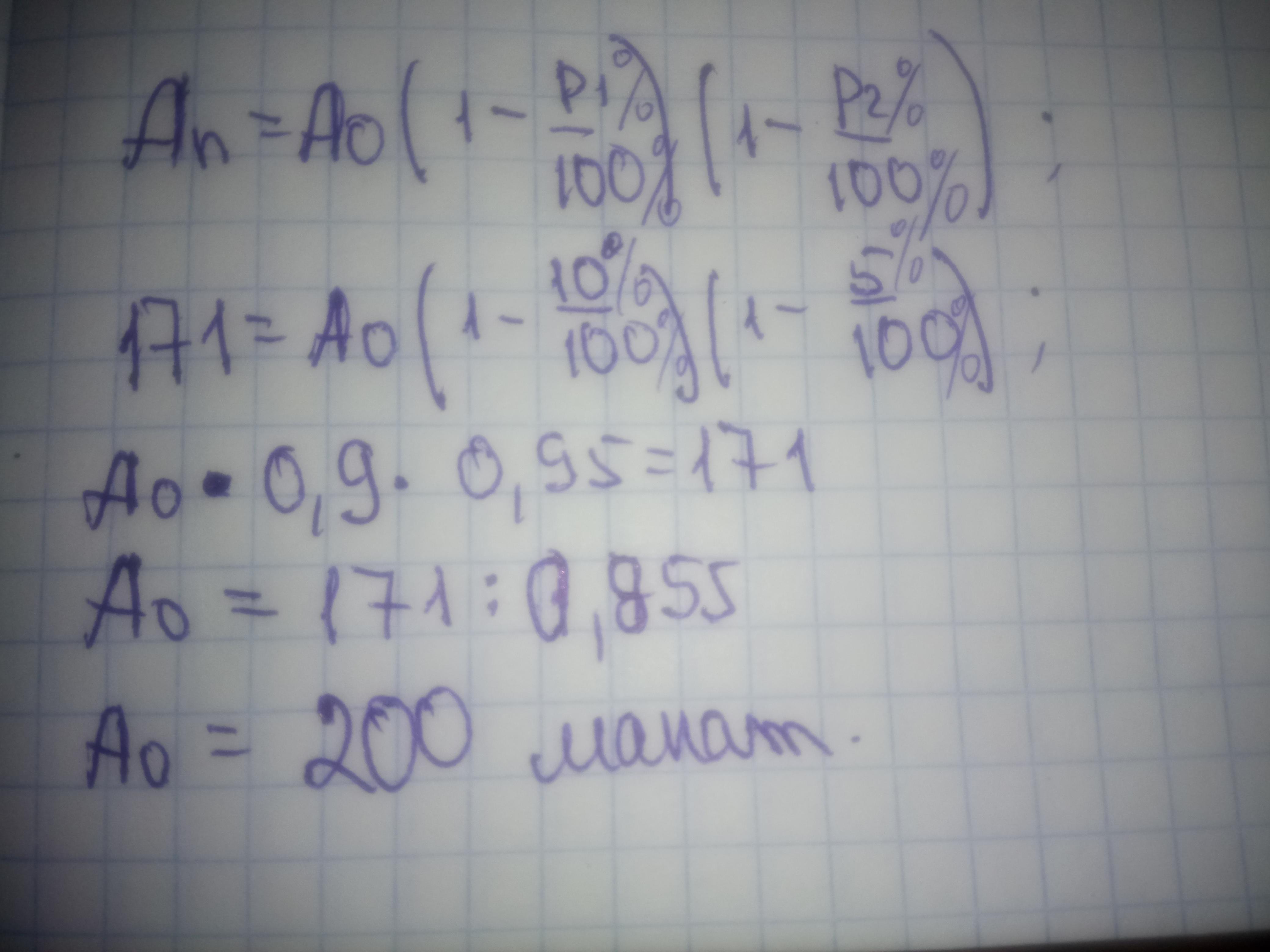 200 манат. Решение задания приложено