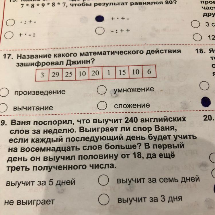 1)название какого математического действия зашифровал джинн?2)За сколько дней Ваня выучит слова?