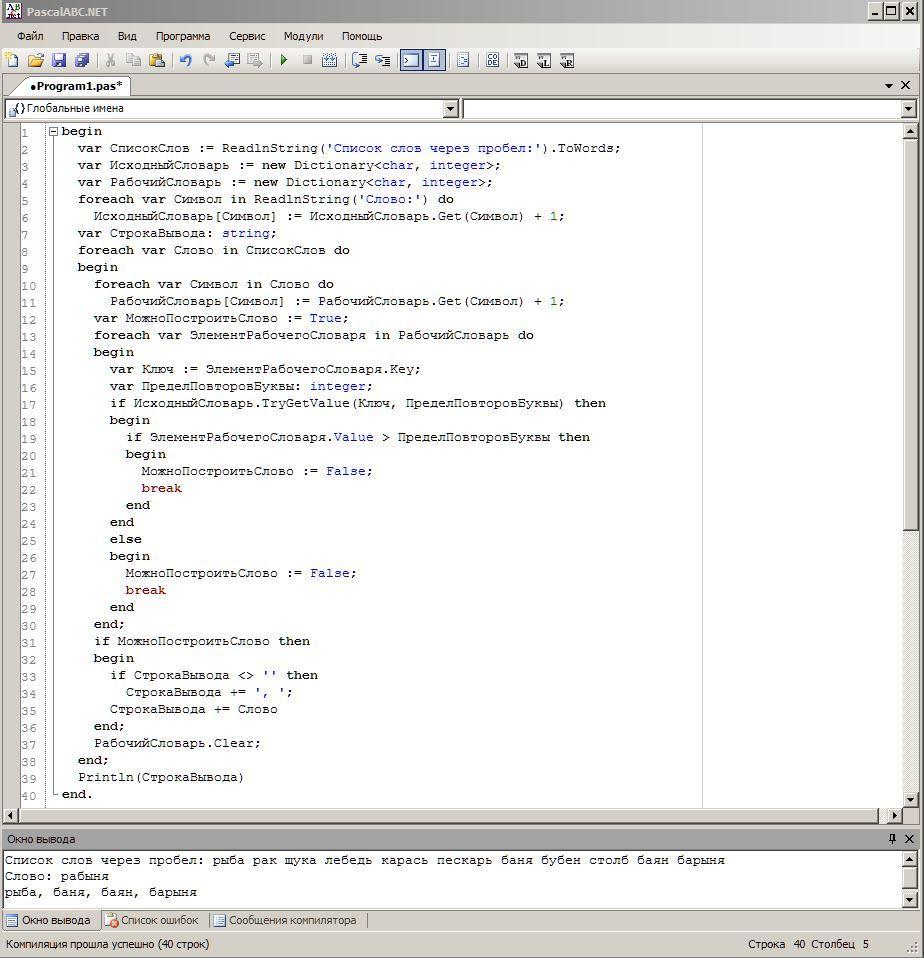 var СписокСлов := ReadlnString('Список слов через пробел:').ToWords;