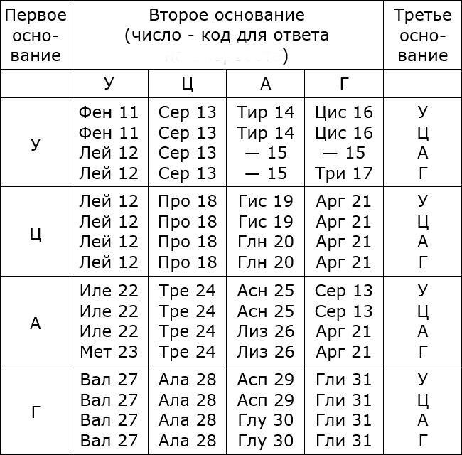 Известно, что все виды РНК синтезируются на ДНК-матрице. Фрагмент смысловой (кодирующей) молекулы ДНК, в которой закодирован участок центральной петли тРНК, имеет следующую последовательность нуклеотидов: 5'-ТТЦТАЦЦГЦ-3'. Установите аминокислоту, которую переносит эта тРНК в процессе биосинтеза белка, если второй триплет соответствует антикодону тРНК. Запишите код этой аминокислоты (две цифры).