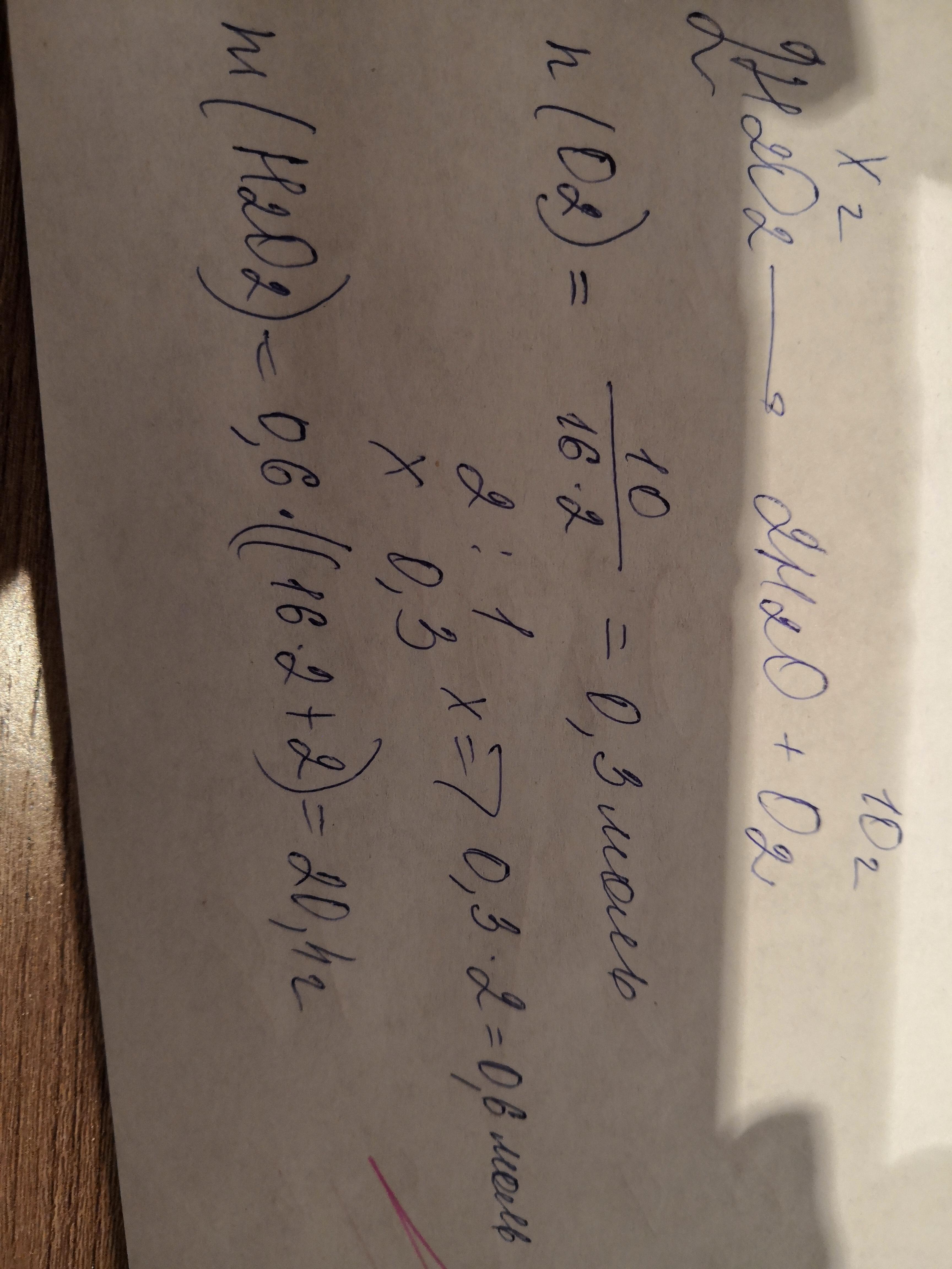 при разложении, пероксида водорода образовалась 10 г кислорода, определить массу пероксида водорода
